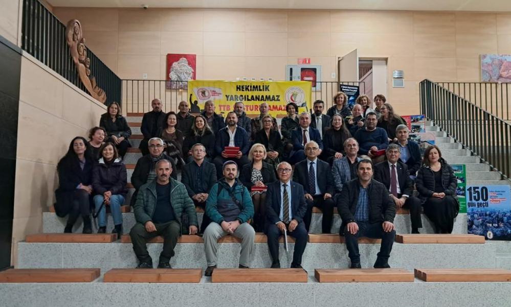 TTB’nin Şubat 2023 depremlerinin ardından bölgede yürüttüğü çalışmaları konu alan “Duvarsız Odalar: Dayanışmadan Süzülen Umut” belgesel filminin Muğla gösterimi, Muğla Tabip Odası tarafından gerçekleştirildi. TTB Merkez Konseyi üyesi Dr. Onur Naci Karahancı ve Muğla Tabip Odası Başkanı Dr. Cafer Şahin’in açılış konuşmalarını gerçekleştirdiği etkinlikte belgesel filmin yönetmeni Sibel Tekin ise filmin hazırlanma sürecini anlattı. Etkinlikte ayrıca deprem bölgesindeki çabaları ve TTB ile dayanışmaları nedeniyle TTB tarafından hazırlanan teşekkür plaketleri, Ankara’da düzenlenen plaket törenine katılamayan tabip odası üyelerine takdim edildi.