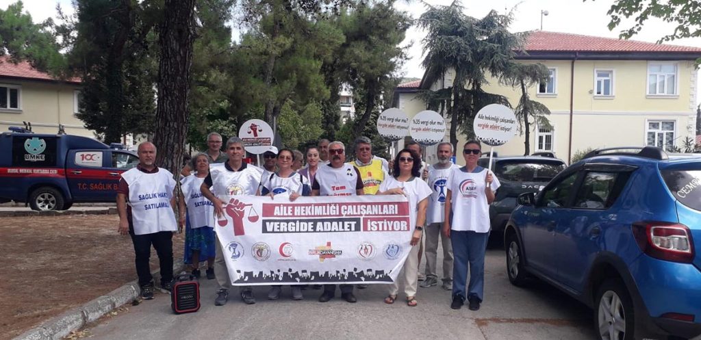 Aile hekimliği çalışanları ve diğer tüm sağlık çalışanları olarak 21 haftadır sürdürdüğümüz “Vergide Adalet İstiyoruz” eylemlerimizi her çarşamba olduğu gibi taleplerimiz karşılana dek sürdüreceğiz.